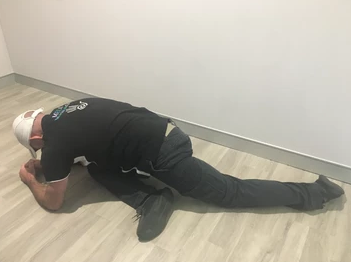 Starting in the push-up position bend one leg up towards your chest and position the leg so the knee is towards the centre of the chest. Lower the body to the ground so you are lying with one leg folded up under your torso.